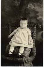 | Adorable poupon ! Charming little baby! Cette jolie fillette aux beaux grands yeux clairs et à la moue chagrine est membre des familles Jacob et Paquet. How strange! Look at the pose the photographer made her take. She almost looks hooked. Even though this positon might have been uncomfortable, she doesnt seem to mind.
